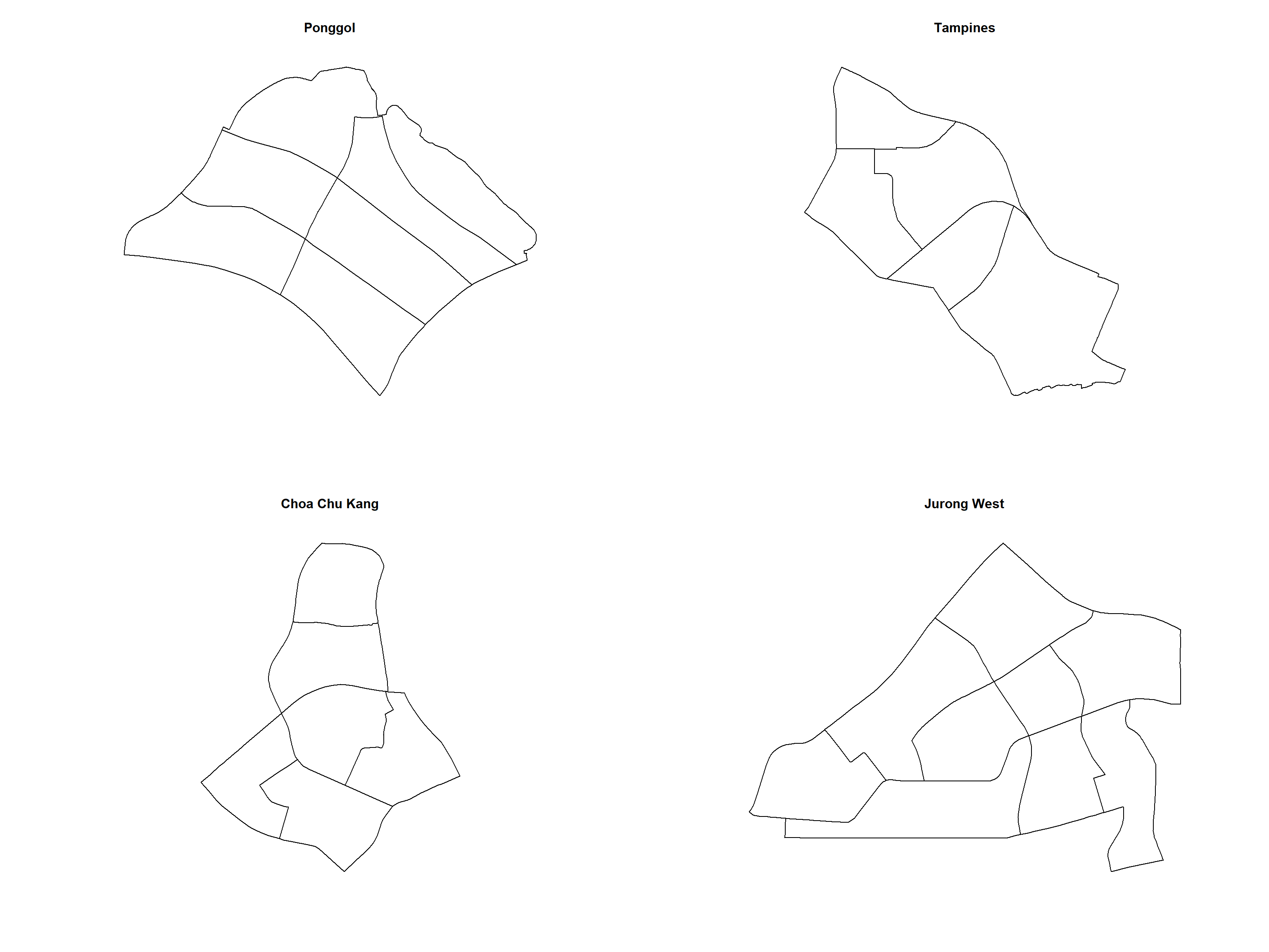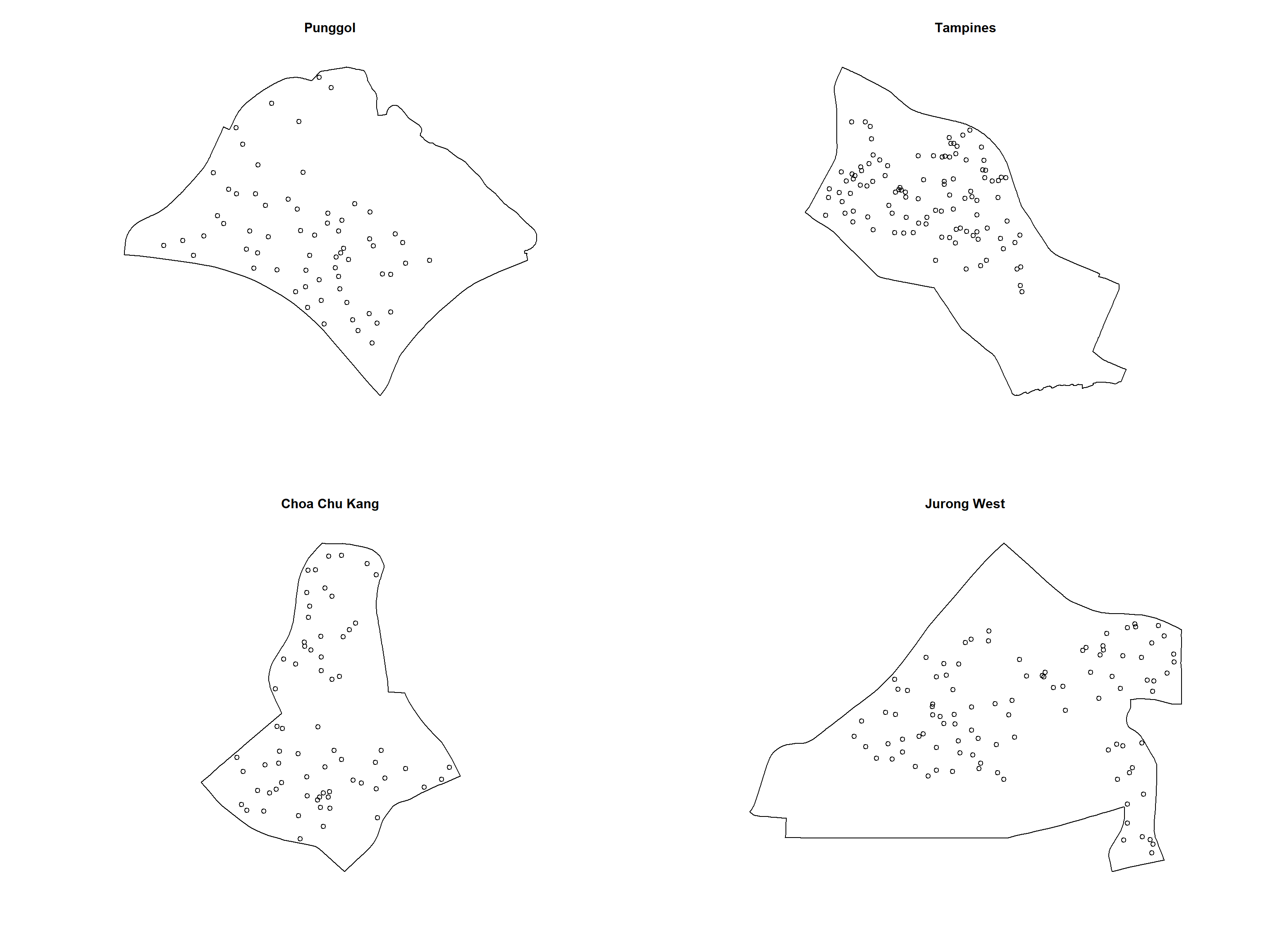 In this section, we would like to further our analysis at the planning area level. For simplicity reason, we will focus on Punggol, Tampines Chua Chu Kand and Jurong West planning areas